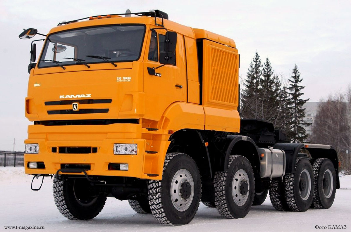 Технические характеристики и фото новых КамАЗов доказывают, что это весьма специализированная техника. Эксплуатируется она для перевозки различных грузов с помощью закрепленных через специальную сцепку полных прицепов больших размеров.