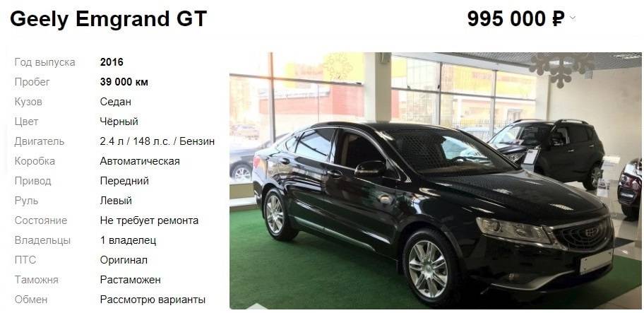 Автомобили из Поднебесной продают гениальные маркетологи. Они предлагают нам за скромные деньги «полный фарш». За цену базовой версии европейского авто можно купить китайскую машину в топовой комплектации. Например, вместо Volkswagen Passat B8 за 1 млн рублей можно взять бизнес-седан Geely Emgrand GT того же года. Но в «китайце» будут и современные датчики, и раздельный климат-контроль, и кожаная обивка сидений и руля.