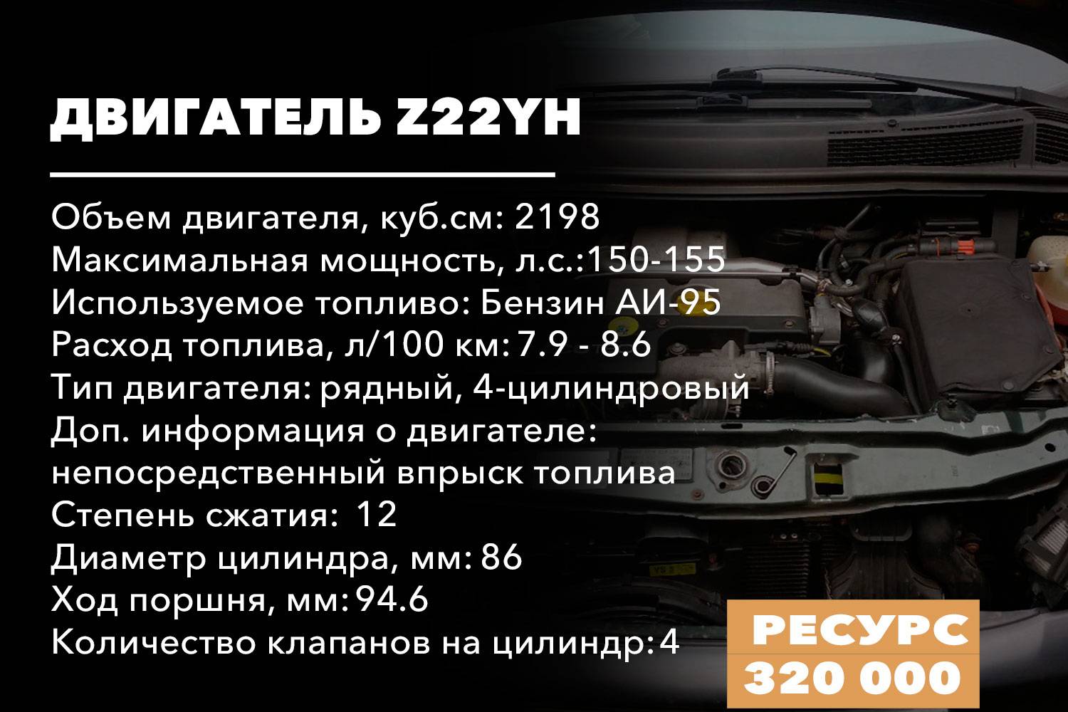 На начало 2000-х годов двигатель был конструктивно совершенен, но не лишен большей части типичных для моторов Opel недостатков: повышенный расход масла особенно после 100 000 км, слабая цепь ГРМ и антифриз в свечных колодцах. Но при должном уходе за Z22SE никаких существенных проблем с автомобилем не возникнет. Конечно, Z22SE не идеален, но в силах обеспечить владельцу минивэна необходимый уровень комфорта, динамики, маневренности. Что касается моторесурса, то практически все установки серии Z22SE выносливы и надежны. Поэтому можем говорить о таких цифрах, как 320-350 000 километров до первого капитального ремонта.