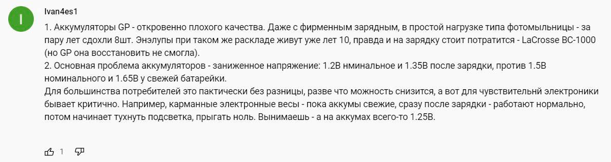 - длительный перезаряд или хранение в разряженном состоянии не оказывали столь пагубного влияния на состояние устройства.