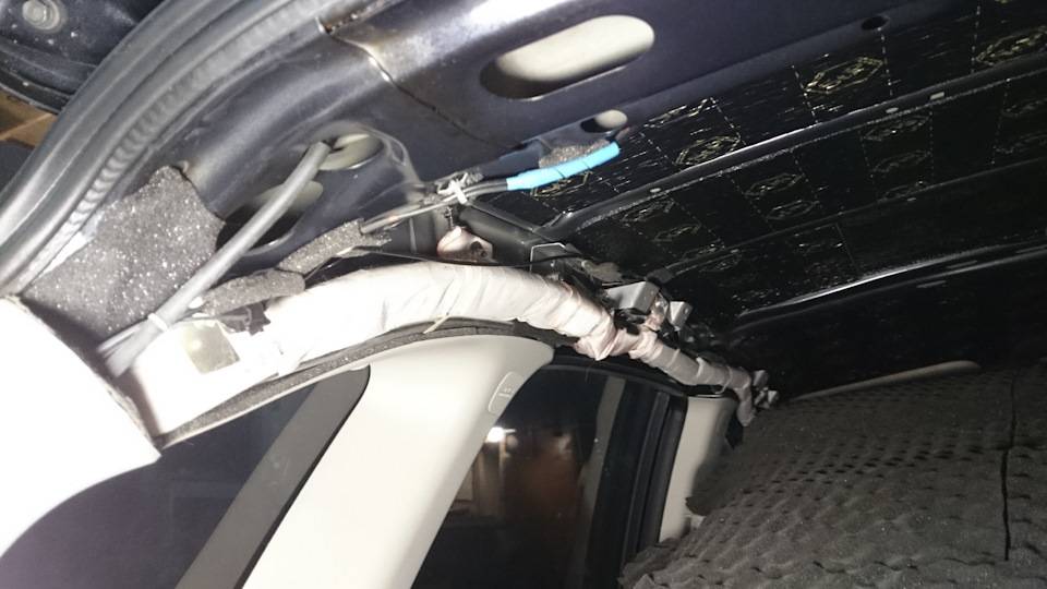 Провода обклеил бипластом и проложил по стойке лобового стекла.