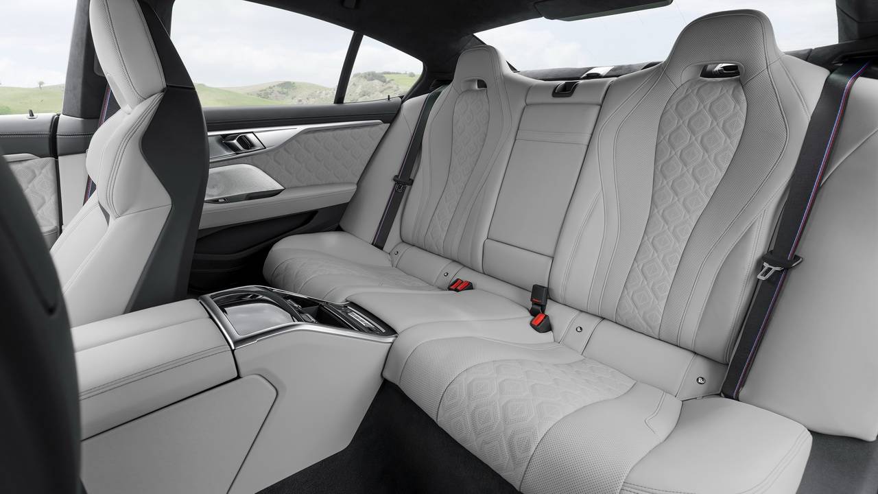 Колесная база у BMW M8 Gran Coupe на 200 миллиметров больше, чем у купе BMW M8, в результате на заднем ряду теперь есть два полноценный комфортабельных посадочных места. Для непродолжительных поездок на месте по центру может разместиться еще один пассажир.