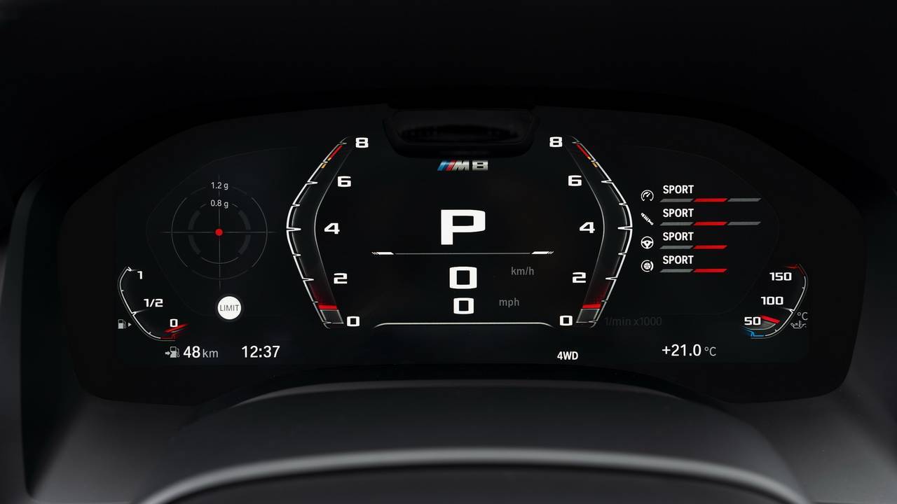 При желании в BMW M8 2020 можно выставить собственные настройки почти всему: по кнопке Setup на тоннеле вызывается меню, где корректируются параметры мотора, подвески, рулевого управления и других систем.