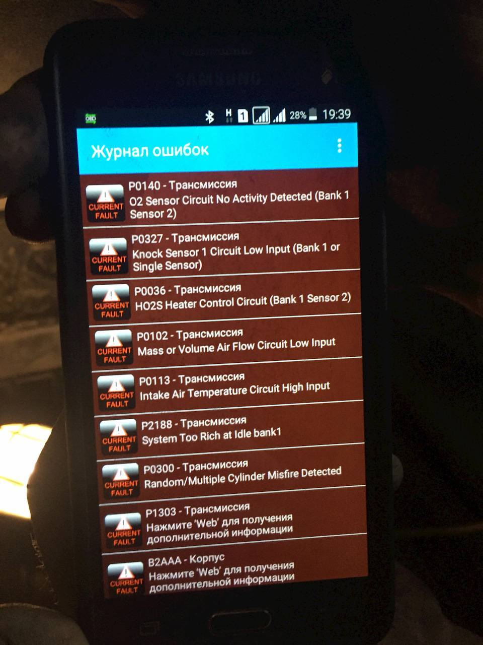 Ноормальным сканером почитать надо.Р0140 обрыв подогревателя дк1, р0036 обрыв нагревателя дк2, р0327 низкий уровень дд, р0102 и р0113 по дмрв и датчику температуры на впуске. Все эти ошибки появляются если имеет место обрыв цепи. Р0300 редко одна выскакивает, причин пропусков воспламенения безумное множество. Р1303 указывает на номер цилиндра, где не было воспламенения. Р2188 слишком богатая смесь, возможно следствие отсутствия воспламенения.Жля начала скинуть и посмотреть какие появятся снова, проверить проводку. Если пропуски останутся, искать причину.