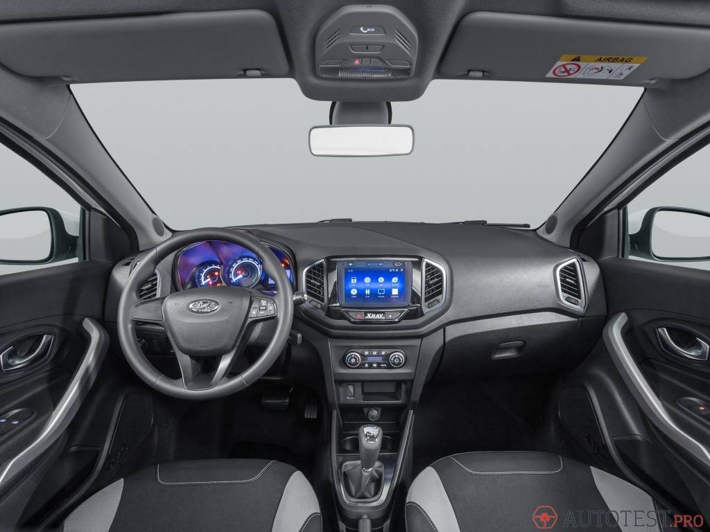 Лада Икс-рей удивила не только внешне, в продолжение дизайну экстерьера реализован и интерьер, вполне соответствующий стилю авто. Внутреннее убранство ничем не напоминает присущий прошлым моделям АвтоВАЗа стиль, и оформлено по всем европейским канонам. Отделка салона выполнена из качественных материалов, в обновлённой версии улучшена звукоизоляция, приборная панель в виде трёх колодцев достаточно информативна, но что действительно впечатляет, так это мультифункциональный руль с кнопками управления аудиосистемой и Bluetooth. Атмосферу дополняет светодиодная подсветка интерьера, создающая комфортное мягкое свечение.