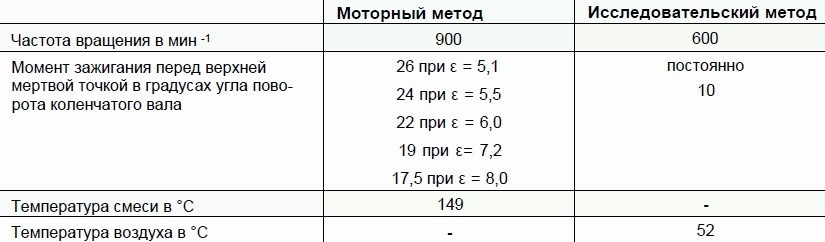 В моторном методе смесь воздуха и бензина нагревается позади карбюратора, а в исследовательском методе — воздух нагревается перед карбюратором.