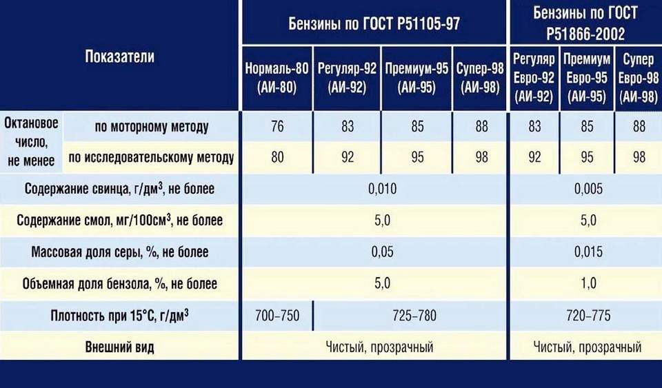 Сравнение состава бензина
