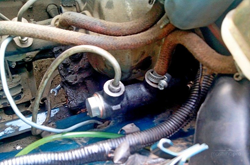 Подтекание тормозной жидкости в приводе выключения сцепления возможно из главного или рабочего цилиндров, а также в соединительных трубках.