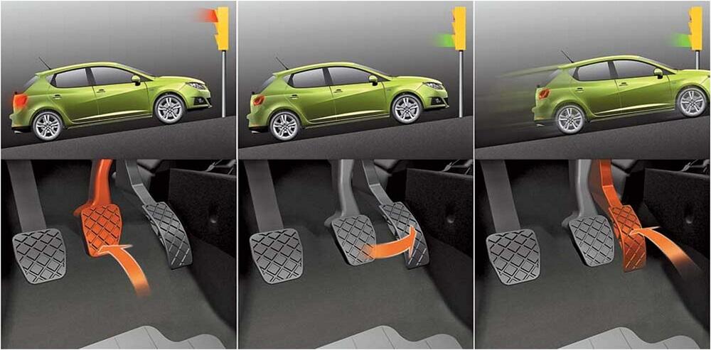 Это важно. Если резко отпустить тормоз, то машина может покатиться назад, если не дошли до момента «схватывания»