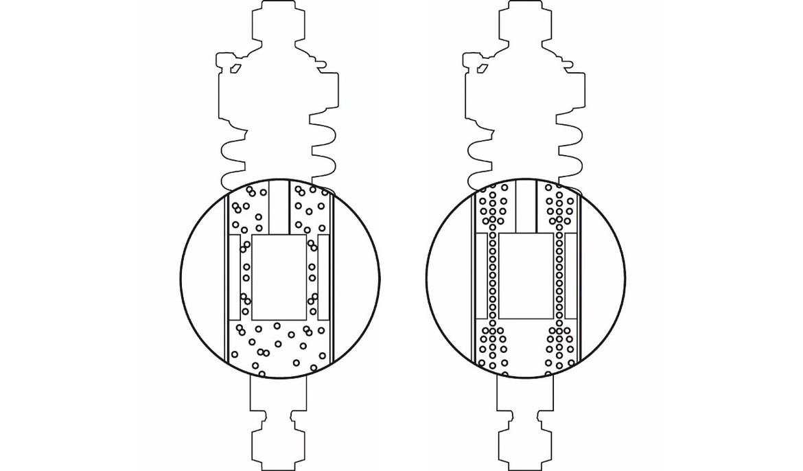 • Во время езды по дорогам, где поршень амортизатора совершает частые движения, может произойти эффект завоздушивания масла. Это в конечном итоге может привести к снижению амортизации, за счет сжимания пузырьков воздуха внутри масла.