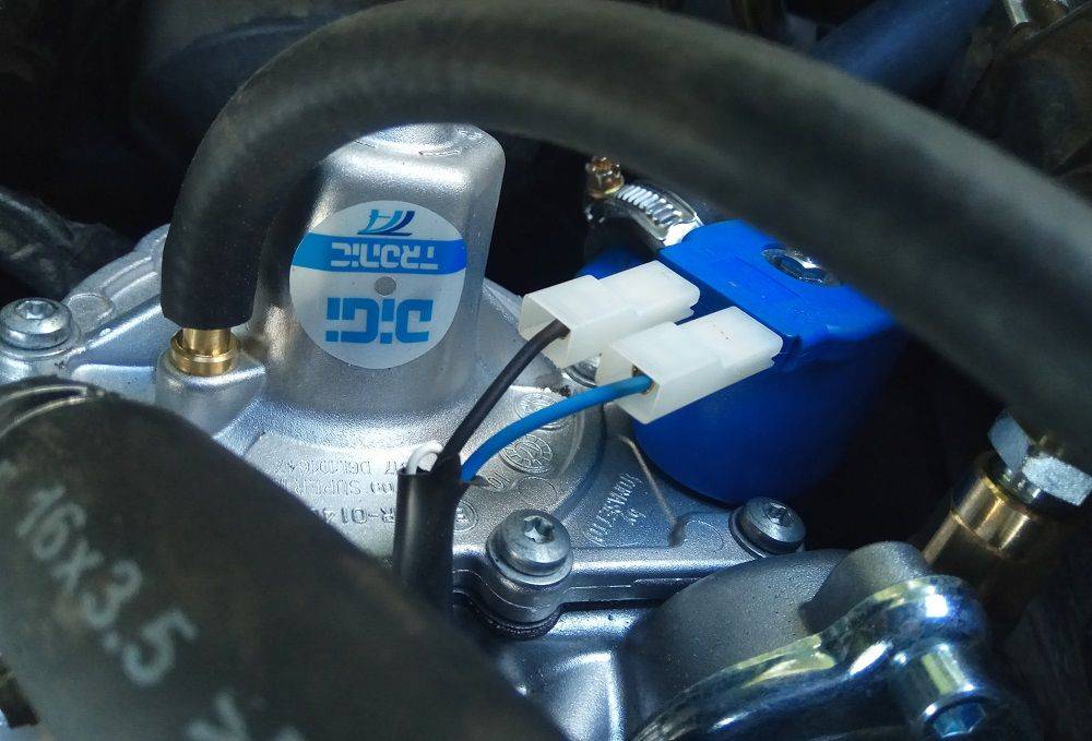 Открытие водительской двери приводит к срабатыванию датчика, который передаёт сигнал ЭБУ на включение газового насоса. Последний поддаёт сжиженный газ из баллона в топливную магистраль и создаёт нужное давление. Двигатель готов к старту, причём сразу на газе даже при отрицательной температуре (что было нереально на 4-м ГБО).