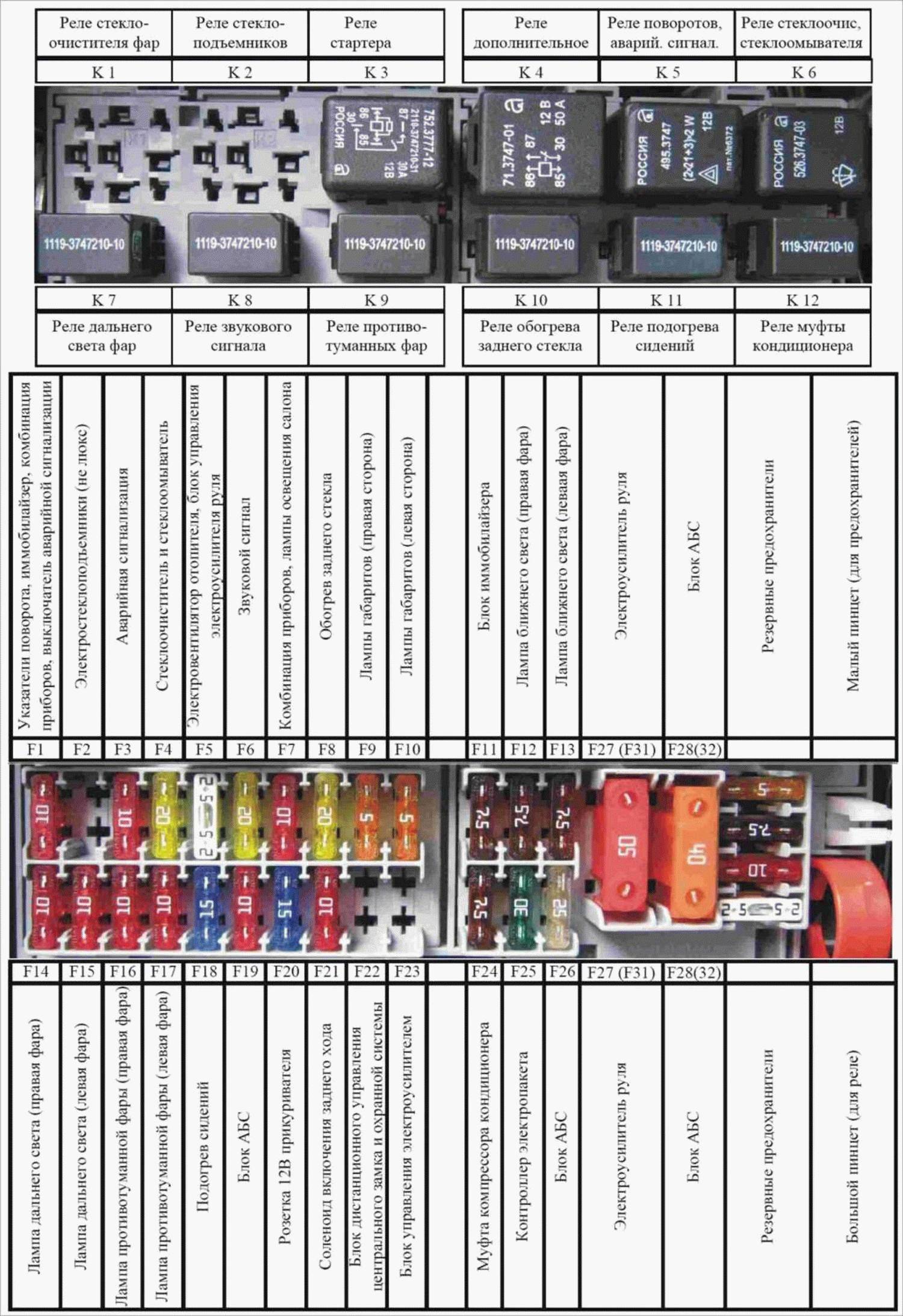 Расшифровка реле и предохранителей в основном блоке Лады Калины.