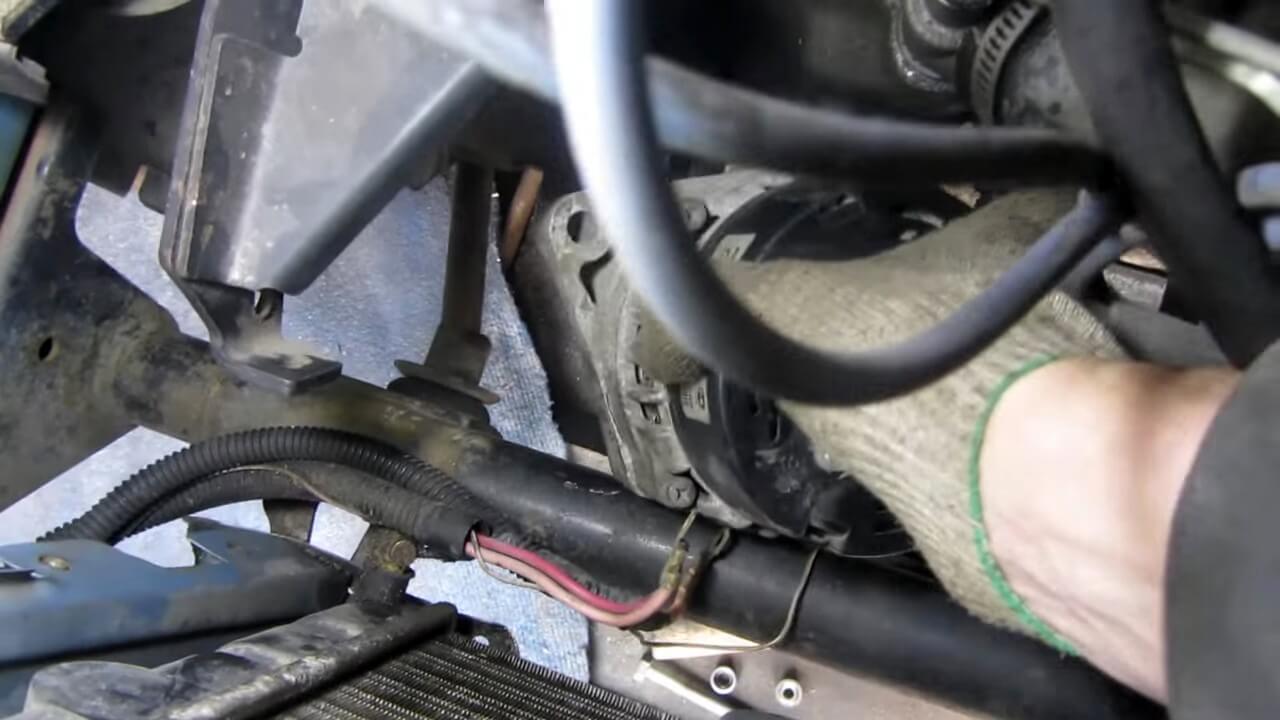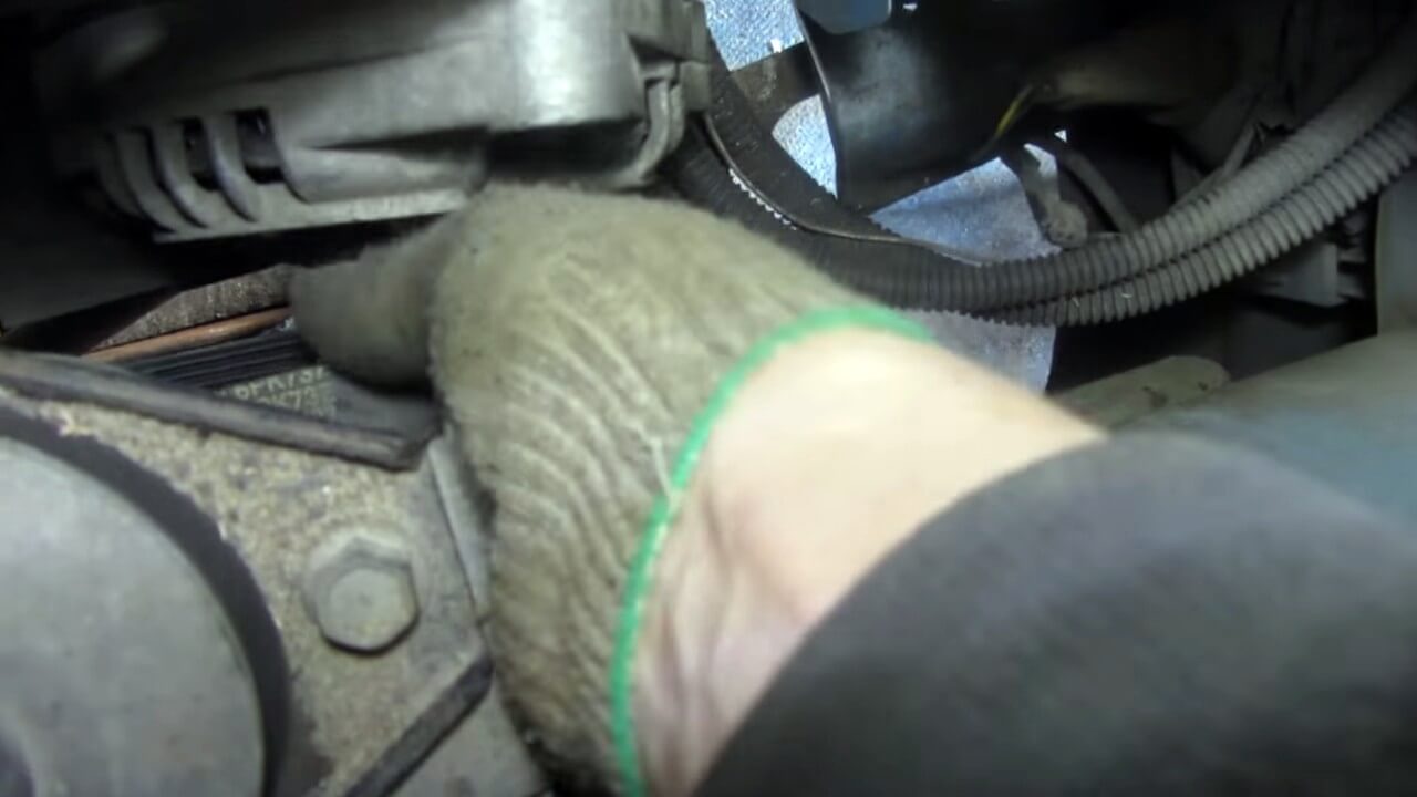 Сдвинув генератор к блоку цилиндров, снимаем ремень.