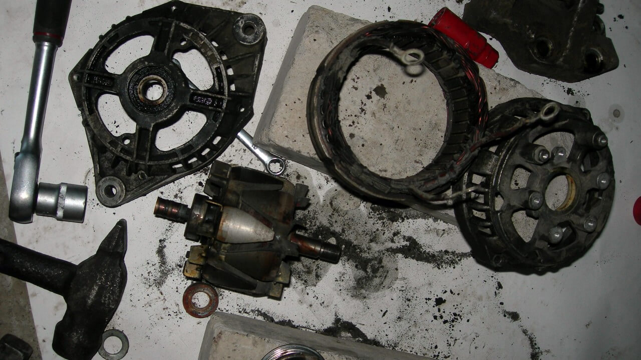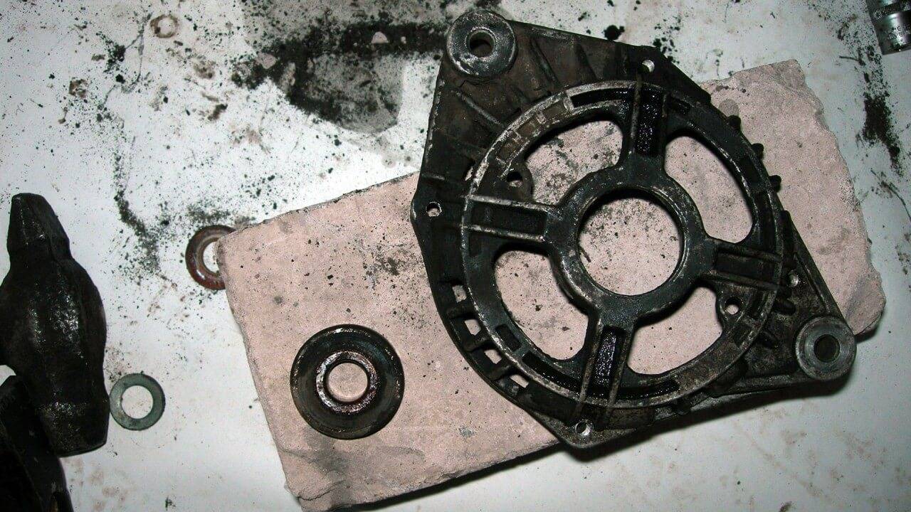 - Заклинивание подшипников. Из-за высыхания смазки и постепенного износа подшипники заклинивают. Сначала обычно рвется ремень, что влечет необходимость переборки узла.