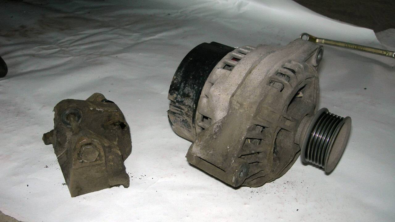 Небольшим пробойником или чем-то аналогичным выбивают ось из кронштейна. Генератор вынимают вверх. Теперь с ним можно проводить ремонт генератора или обслуживание.
