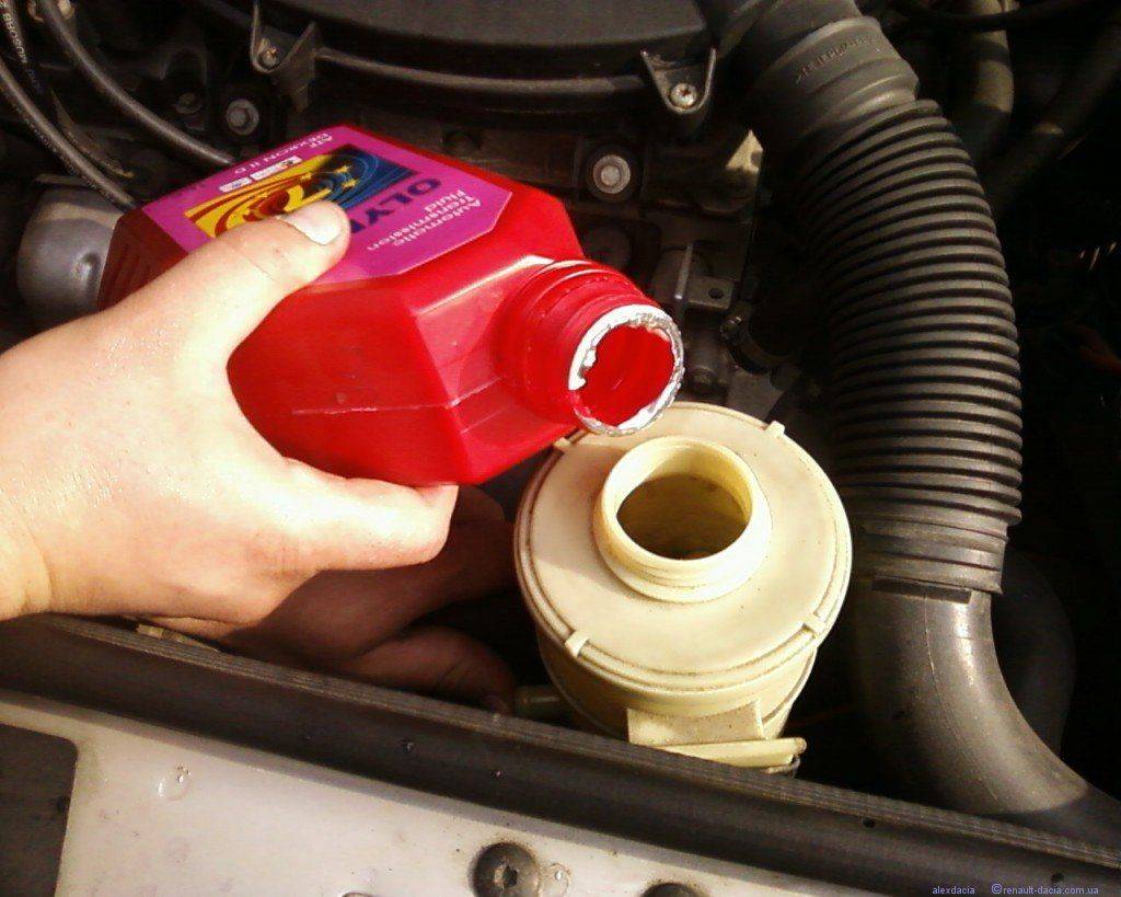 Довольно часто воздух в ГУР попадает именно в процессе смены рабочей жидкости. Чтобы избежать данной неприятности, масло в гидравлическую систему нужно заливать медленно (5-6 л. в мин.).