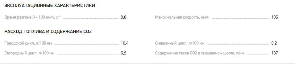 - расход топлива город/трасса/смешанный – 10,4/6,9/8,2 л на 100 км.