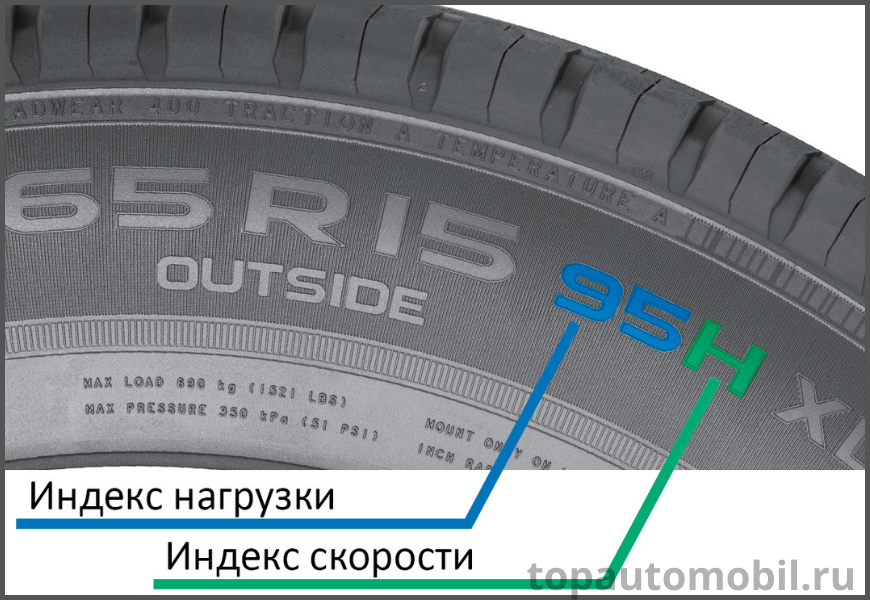 - Индекс нагрузки шин – характеризует максимальный вес на ту или иную часть авто, который допустимы для покрышки.
