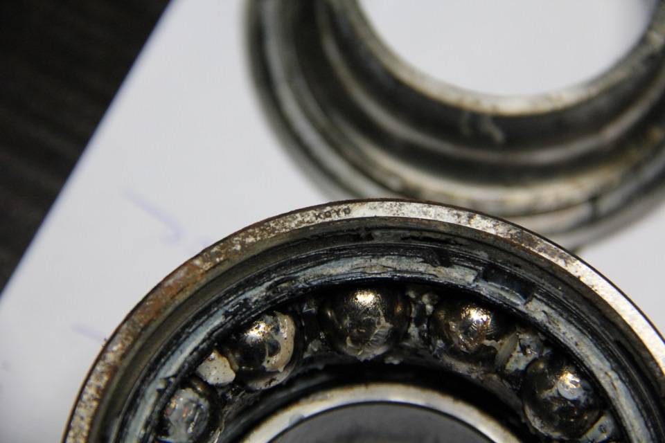 «Располовинив» такой двигатель (опять же по причине «насосного эффекта), мы можем наблюдать перегретый подшипник. Внешне его поверхность покрыта т.н. «цветом побежалости» (что-то похожее на каплю бензина или масла в луже).