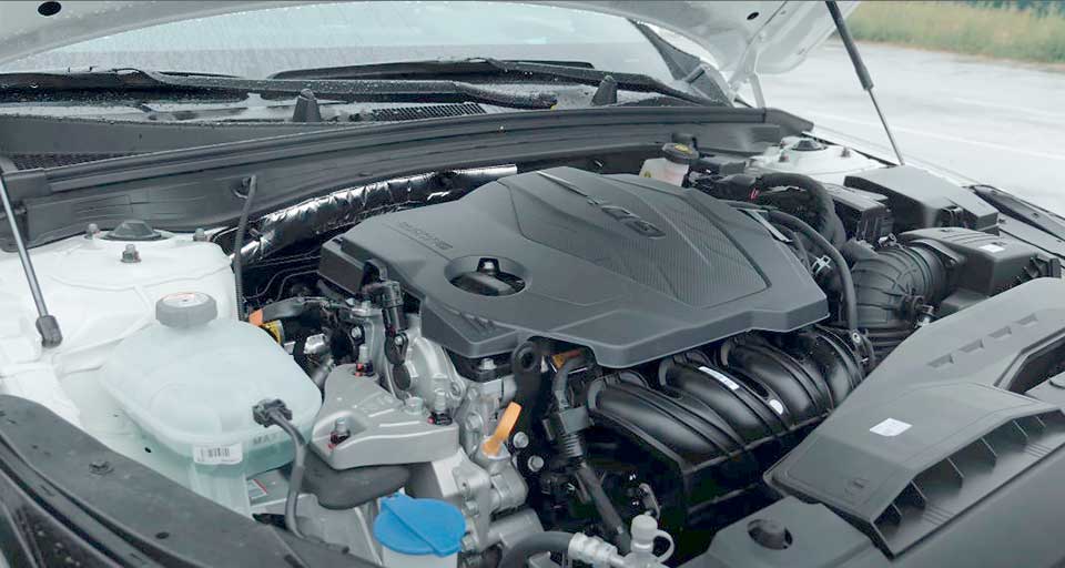 Силовой агрегат G4KN – это 2.5-литровый движок (2497 см3) с прямым топливным впрыском, мощностью 194 л. с. при 6100 об/мин, крутящим моментом 246 Ньютон-метров.