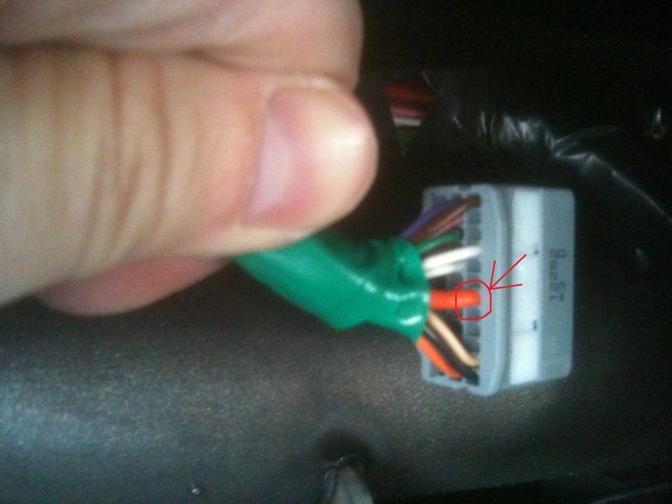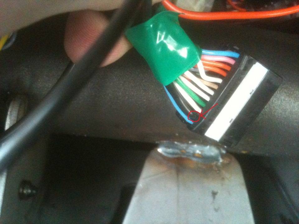 Тянем его в подкапотное пространство к ЭБУ (место где протянуть, находится чуть дальше ручки открытия капота, там идет пучок проводов). Когда все провода кинули куда надо, подключаем к ЭБУ. Здесь нам нужен разъем №7 (см. фото), берем наш провод и подсовываем его к проводу который уже находится в разъеме.