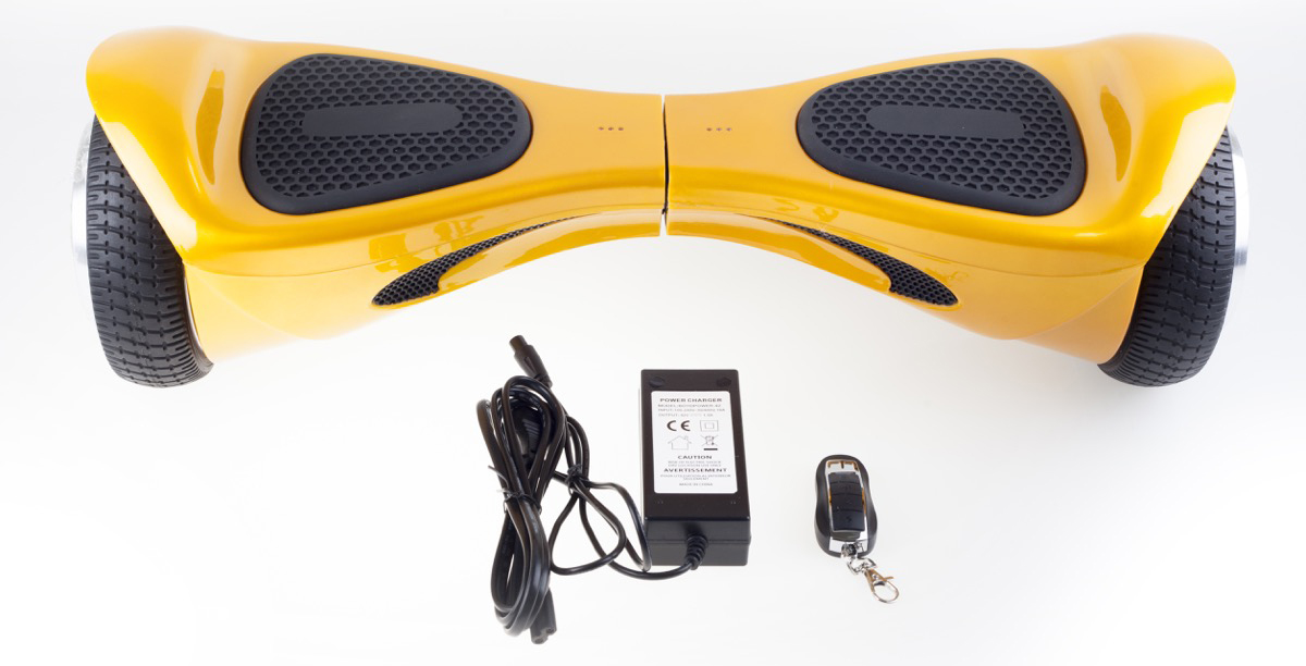 Гироскутер выглядит как небольшая доска с парой колес. Баланс устройства регулируется специальными гироскопическими датчиками. Конструкция очень компактна, поэтому без труда помещается в багажнике автомобиля или спортивной сумке. Изделие состоит из нескольких элементов: