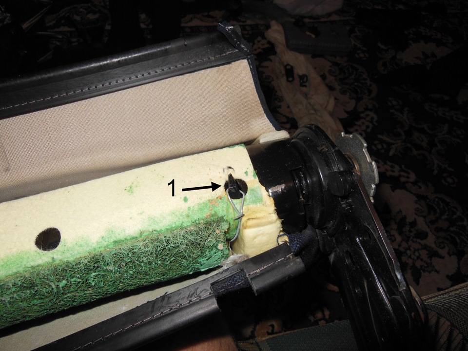1. Откручивает концы проволоки 1 и снимаем натяжение этой самой проволоки, дабы легче было разбирать.2. С помощью пассатижей или отвёртки отгибаем усики 2 крепление проволоки.3. С помощью фигурной отвёртки снимаем ещё один фиксатор 3 проволоки чехла.4. Достаём бонки 45. Снимаем картонную защёлку как показано на рисунке (по стрелкам).