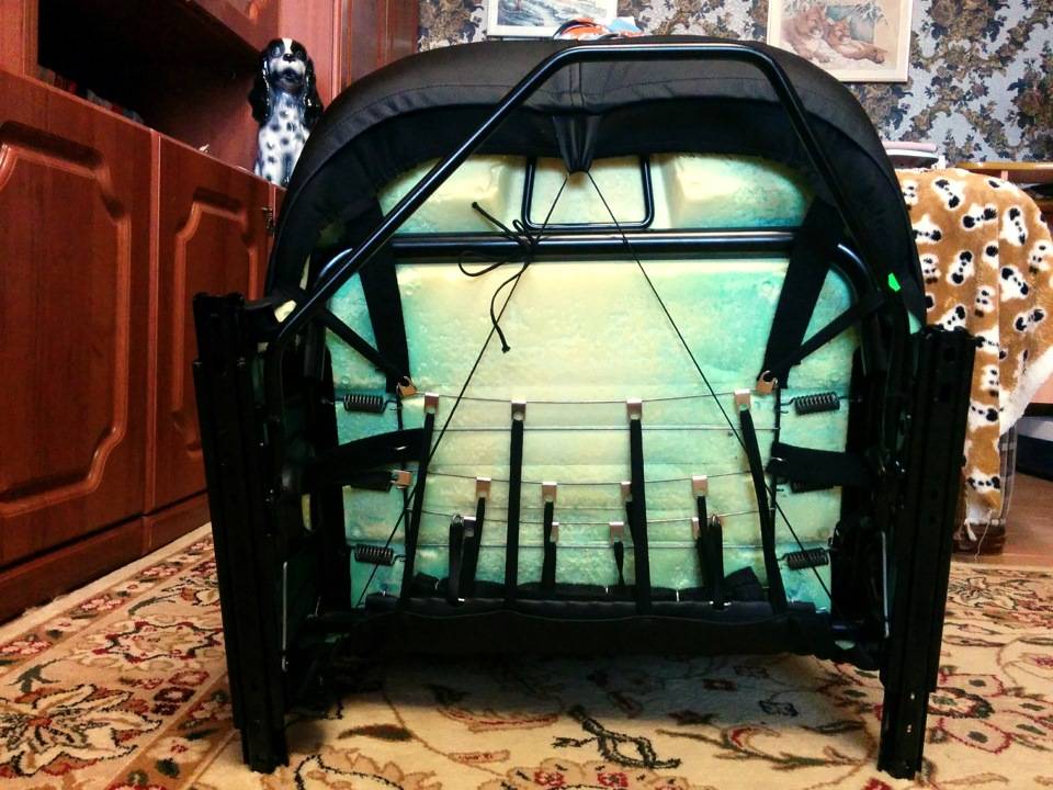 - после проведения ремонта и отделения подушки от спинки необходимо снять обивку для последующей замены нитей подогрева, вышедших из строя;