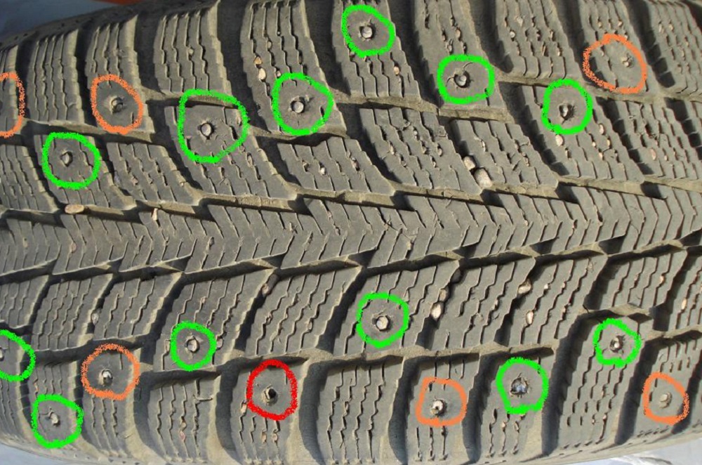 Обычно теряется до половины шипов, но намного хуже, если теряются все. В этом случае наступает эффект челюсти без зубов. Такая резина снижает эффективность сцепления на льду практически к нулю.