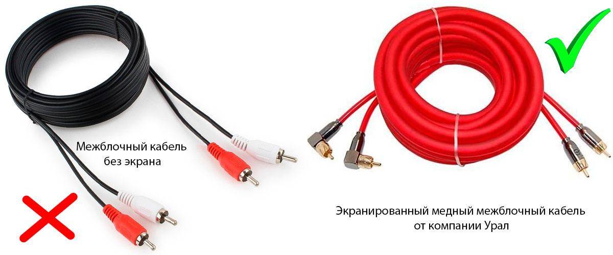 Задача межблочного провода – передать начальный сигнал от головного устройства к усилителю. Этот сигнал уязвим к помехам, а автомобиль имеет большое количество электрического оборудования. Если мы установим «тюльпаны», предназначенные для дома, или бюджетные автомобильные, велика вероятность, что при работе сабвуфера возникнут посторонние шумы.