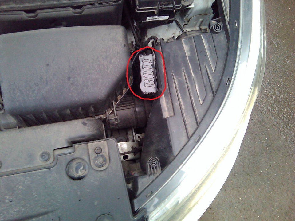 - Устанавливаются блоки розжига. Оптимальным вариантом будет их размещение в моторном отсеке либо под передним бампером. Надо найти свободное пространство для монтажа. Рекомендуется выбрать защищенное место, где на блок не будет воздействовать влага и агрессивная внешняя среда. Фиксация устройств осуществляется посредством хомутов либо скотча. Если в комплектацию входят специальные крепления, то используются они.