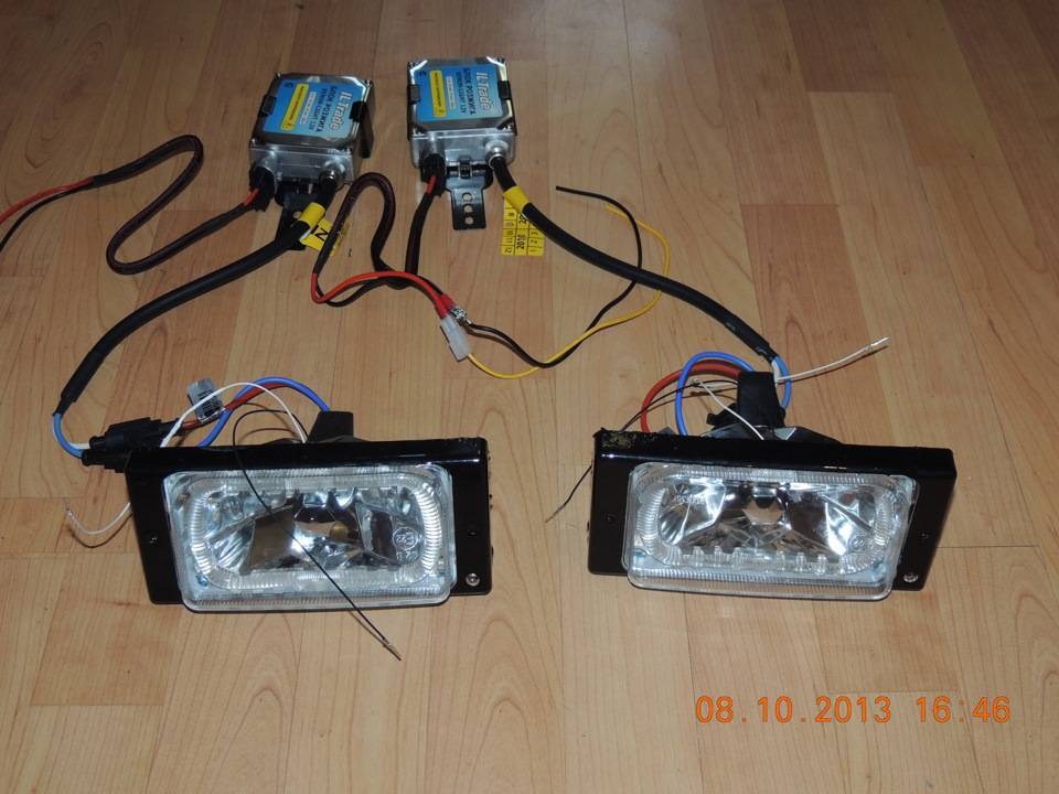 - Провода из блока питания противотуманных фар соединяются с ксеноновыми линзами, результат тестируется;