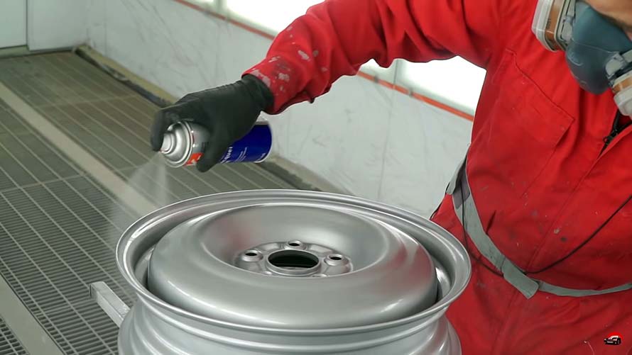 После нанесения первого слоя даем ему подсохнуть около 5-7 минут и затем наносим последующие с таким же интервалом выдержки между ними. После того, как краска полностью укроет грунт, оставляем колесный диск на 10-15 минут, чтобы испарились все растворители.