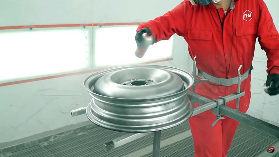 Наиболее распространённый вариант покрытия дисков машин. Таким способом можно покрасить деталь полностью или частично, только повреждённых и обработанных затем зон.