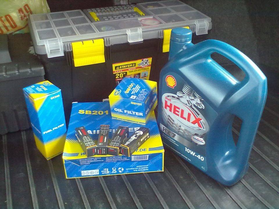 Ну и само собой вам понадобится новое масло и масляный фильтр. Масло можно купить как в канистрах (по 4-5 литров), так и на разлив. Объем масла в двигателе составляет в среднем около 4 литров, но зависит от рабочего объема мотора.