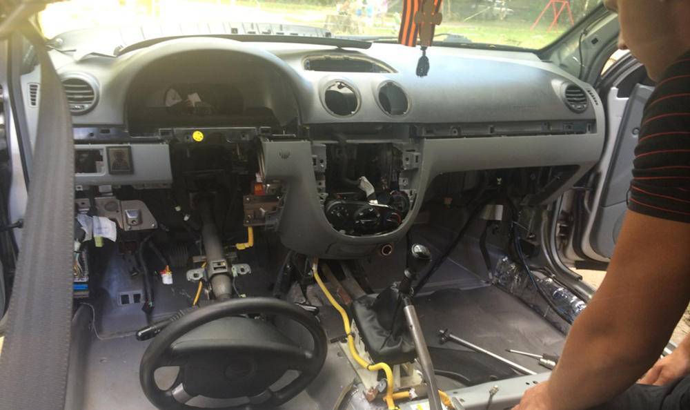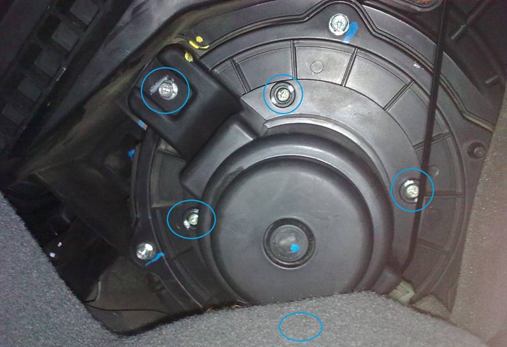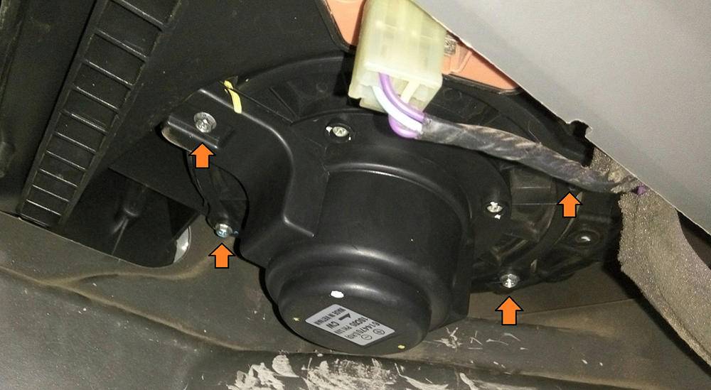 Этот узел находится практически в салоне, под бардачком. Поэтому его легко демонтировать для планового обслуживания. Нужно всего лишь снять бардачок, а затем открутить 4 самореза, которые удерживают вентилятор. Сделать это поможет отвертка крестовая или гаечный ключ на 7,5. Будьте готовы, что придется столкнуться со сопротивлением штатной шумоизоляции автомобиля.