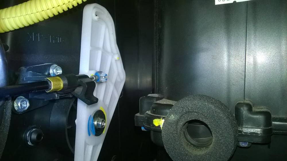 - Рассверлить отверстия крепления тросика и с его помощью немного подрегулировать.