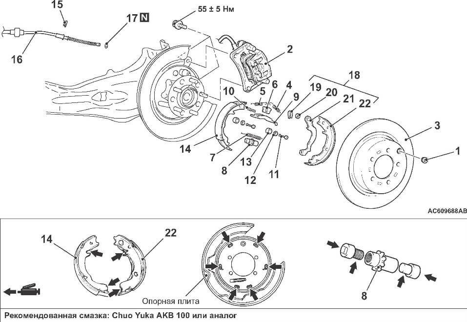 В процессе замены колодок, рекомендуется заодно проверить и функциональность стояночного тормоза. Передние башмаки заменяются по той же схеме, никаких особых отличий нет.