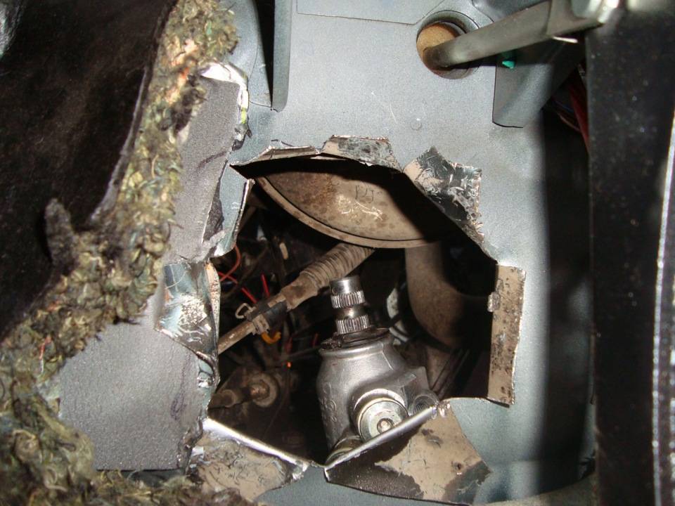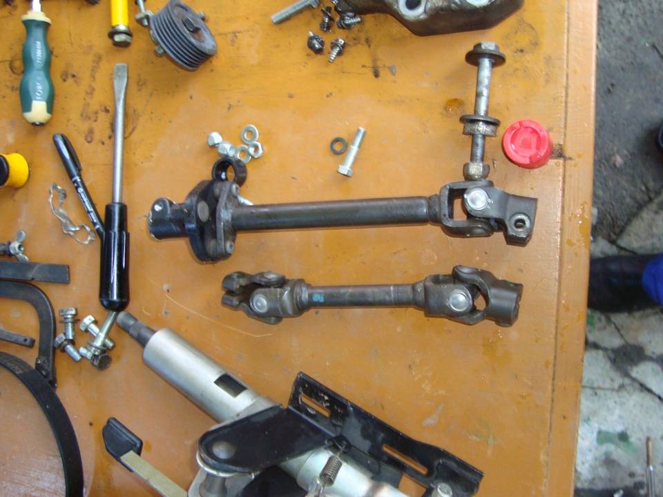 Начал разбирать: 1. Снял рулевой кожух (да ничего сложного). 2. Отсоединил и снял все переключатели (дворники и свет). 3. Снял замок зажигания(первая проблема – болты зубилом откручивать надо, так как граней нет (!). 4. Зубилом расправил хомут крепления вала и рулевой рейки (у моторного щитка). 5. Зубилом открутил два болта крепления рулевой колонки (тоже весьма неудобно). 6. Открутил остальное крепление рулевой колонки (две гайки на 13). 7. Снял рулевую колонку (почему не снял сразу руль? – он у меня не стандартный, за него тянул когда колонку с рейки срывал, к тому же он через переходник крепится, в тиски зажму и через втулку выбью). 8. Надел вал на ЭУР (посадочные места зубилом расширил). 9. Примерил переходник и понял что шпильки крепления колонки (с которых гайки на 13 скручивал) нужно укорачивать (иначе в ЭУР упираются). 10. Отмерил чтоб лишь чутка из гайки выходили и отпилил (можно пользоваться болгаркой, я обошелся пилой и напильником). 11.наживил ЭУР (через переходник конечно, переходник затянул). 12. Соединил вал ЭУРа с рейкой. 13. Затянул крепление ЭУРа к переходнику (четыре гайки на 13 плюс гровера). 14. Поставил на место замок зажигания (использовал болты под шестигранник, так удобнее).