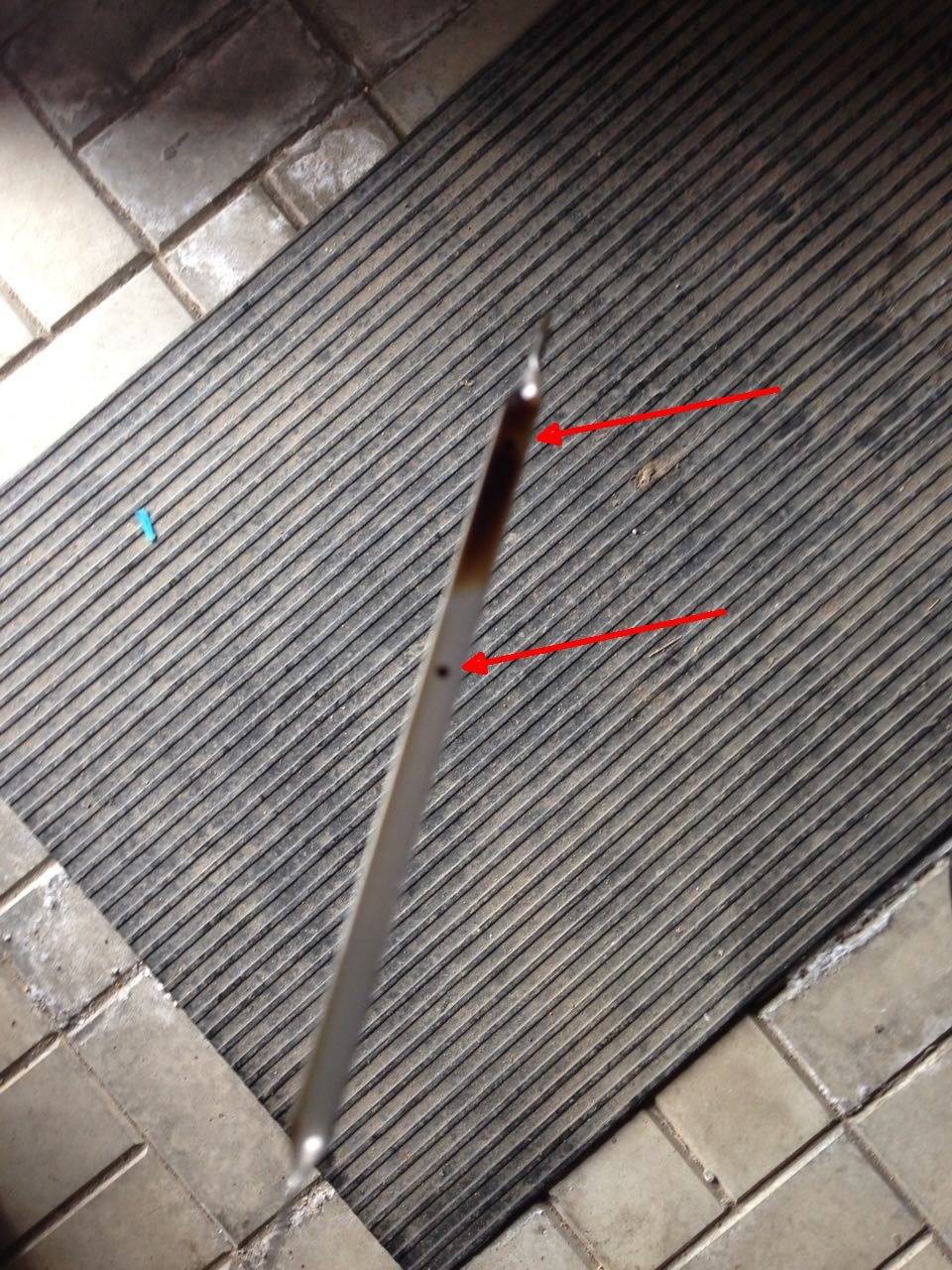 - Затем щуп нужно вернуть на место и подождав пару секунду снова извлечь наружу. Этого времени маслу хватит, чтобы оставить след для контроля.