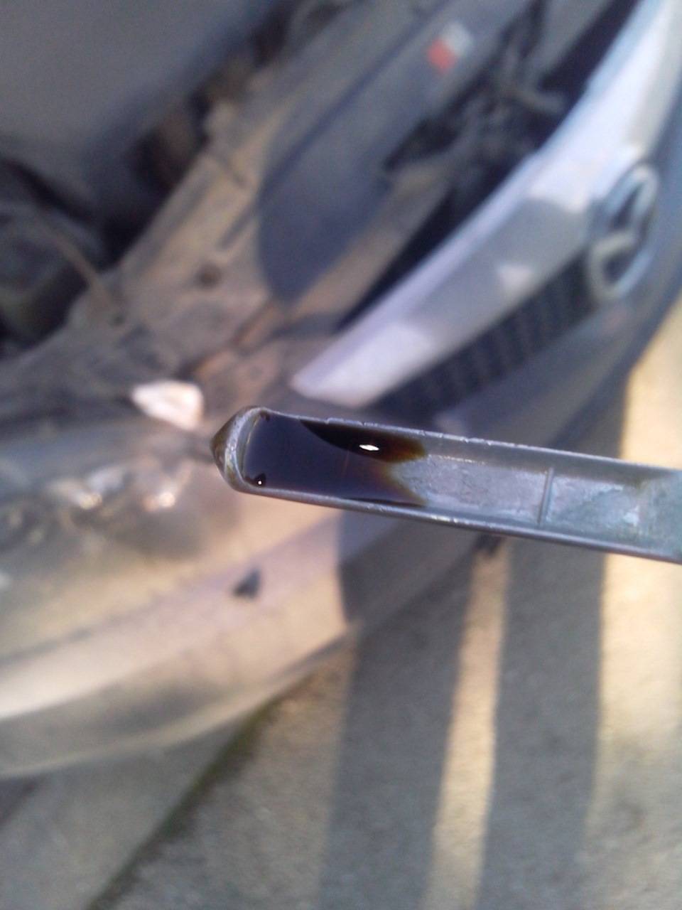 Во время проверки уровня масла надо проверять и качество масла. По маслу на щупе видно, прозрачное оно или нет. Бывает, что масло вообще черное-черное. В этом случае, конечно же, следует сразу заменить.