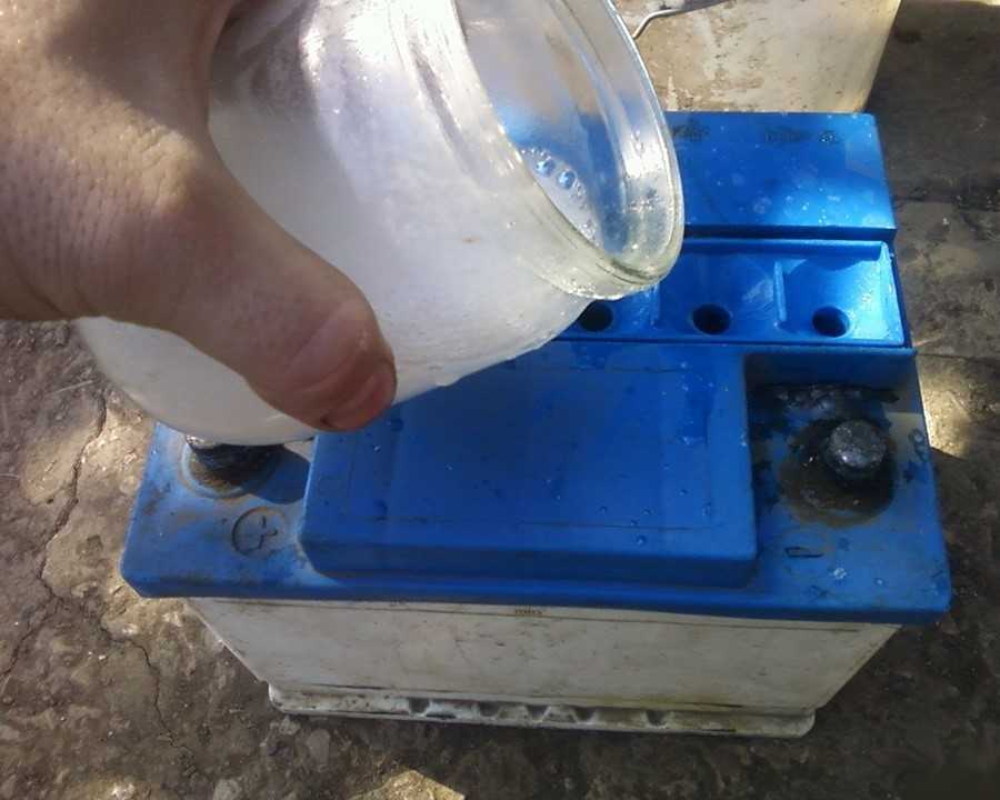 Мыть нужно тщательно, чтобы удалить оставшийся старый электролит, можно даже немного потрясти аккумулятор. После обработки водой в середину банок засыпается пищевая сода, которая находится там на протяжении трех часов и потом сливается. Следующим веществом для обработки является раствор поваренной соли, которым заполняют банки на час. После того, как раствор удалили, можно считать, что банки чистые