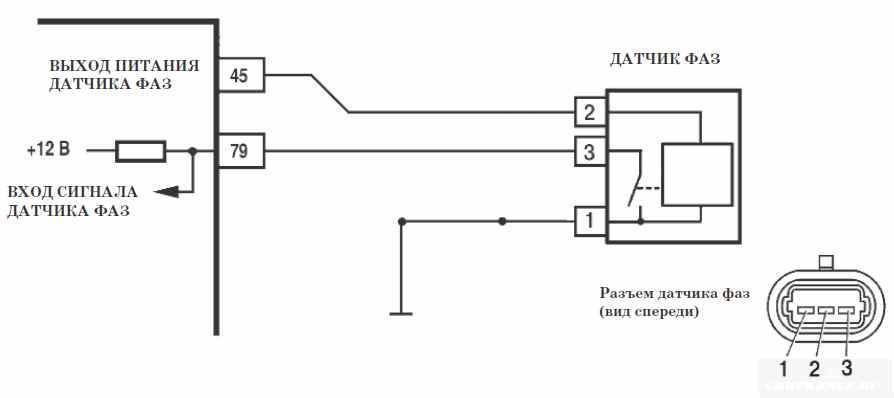Обратите внимание на рисунок: Если увас появились следующие признаки, то скорее всего неисправен датчик фаз (дф). Во время запуска двигателя, стартер крутится 3-4 секунды, затем двигатель запускается и загорается чек эйндж