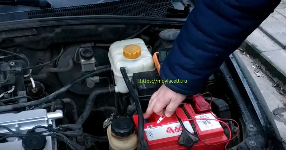 Причиной неисправности часто является АКБ. Для проверки версии достаточно измерить напряжение на клеммах и корпусе аккумуляторной батареи.