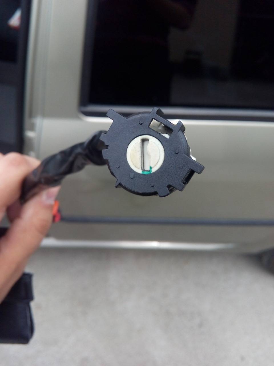 А именно, в оригинале вот эта белая окружность в центре «насадки» на контактную группу — имеет плоскую прорезь, в которую входит плоский же штырек из личинки замка.