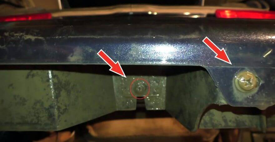 - То же самое делаем с двумя верхними винтами, расположенными у задних фонарей.