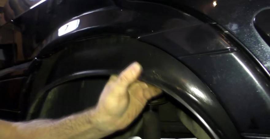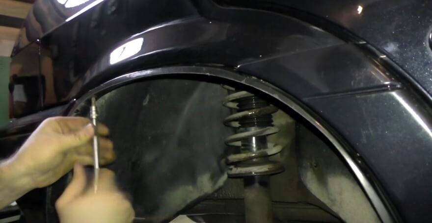 После этого необходимо открутить два самореза в арке колеса ключом на 8.