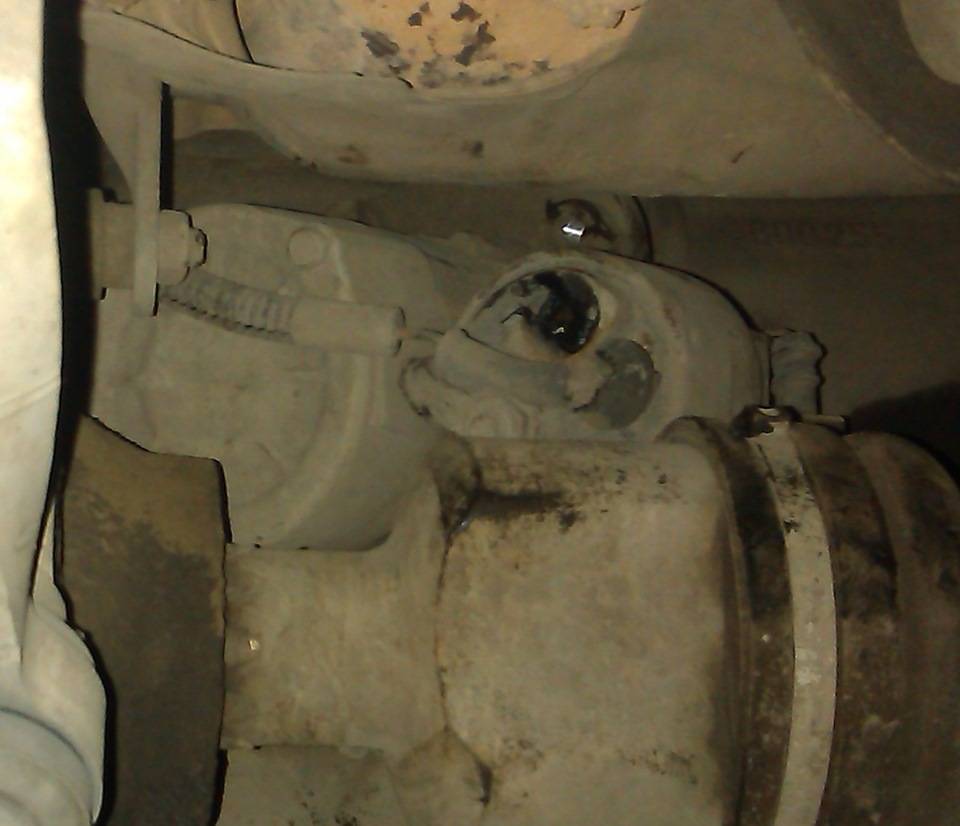 Откручиваем их, берем лампу переноску и снова в яму. Там надо враскачку вынуть стартер — он пока еще держится на запрессованой втулке.Вот он снят: