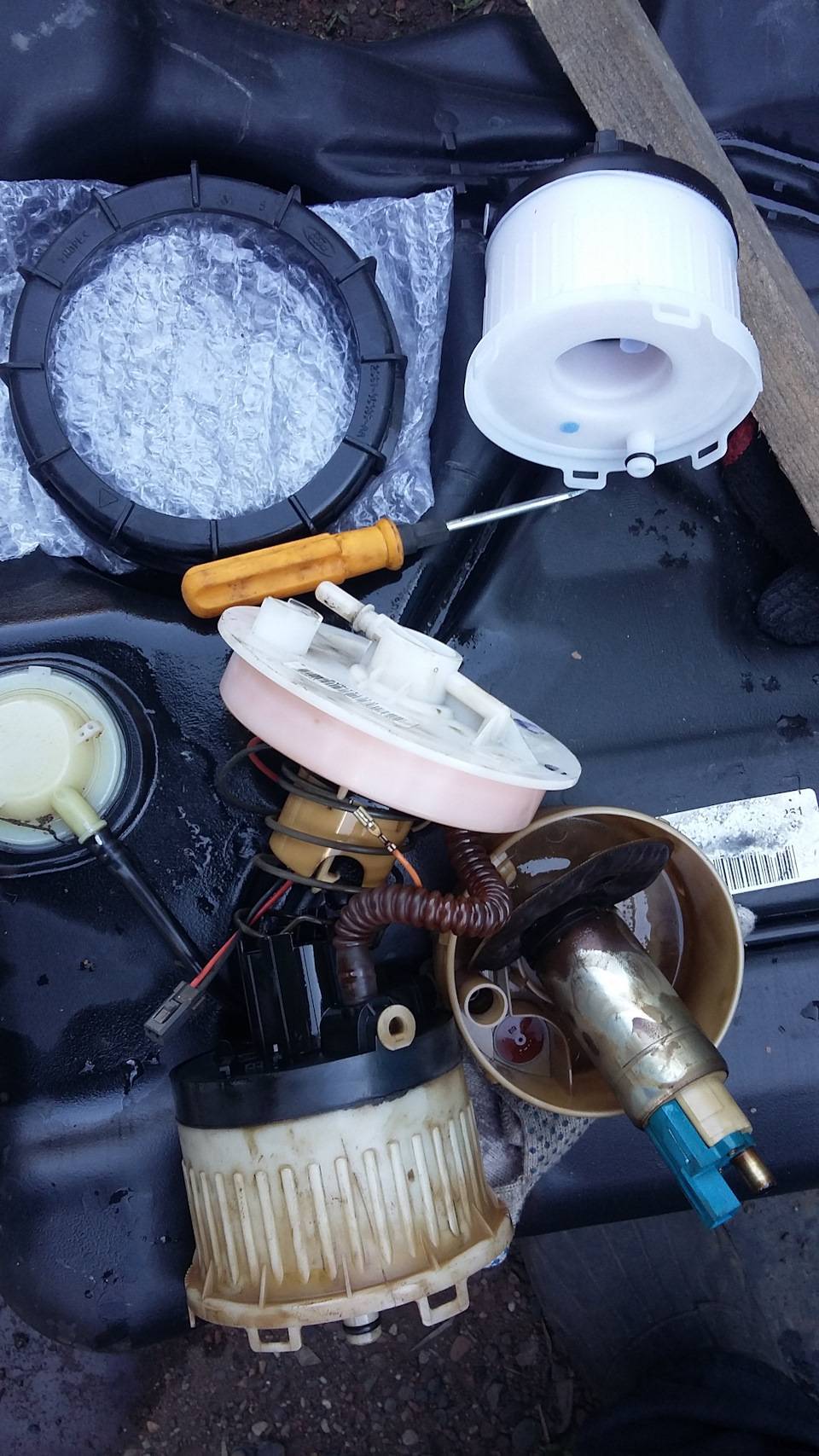 — Заглушил — через минут 30 давление так и стояло 3,2бар — значит клапан и трубка держат))В итоге на все потратил 9 часов (с 14 00 до 23 00) и уже вечером счастливый поехал домой))В итоге скажу, что снятие бака очень тяжелое занятие. Главной причиной моего решения было желание промыть бак после приличного пробега, но в баке я увидел идеальную чистоту, всю грязь же насос засосал в стакан и в фильтр грубой очистки, откуда она и была удалена. Поэтому могу уверенно сказать что наилучший вариант — пилить дыру в полу!Всем удачи!