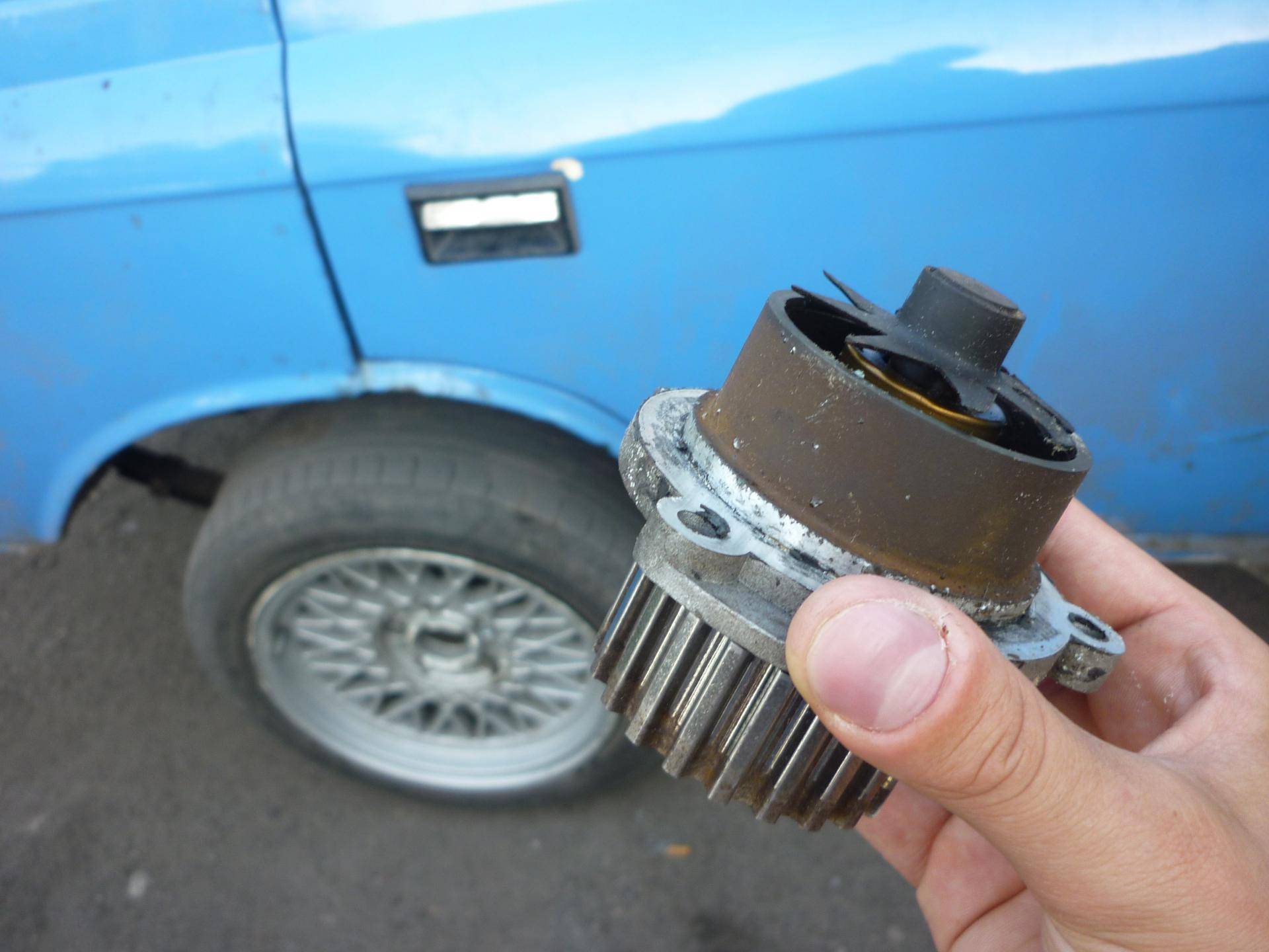 При обнаружении течи в нижней части корпуса помпы надо полностью выпустить охлаждающую жидкость.